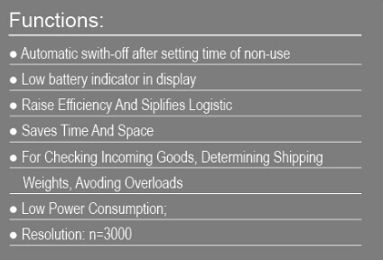 * Application: 1. weight unit conversion 2. net/gross shift 3.Pre-tare