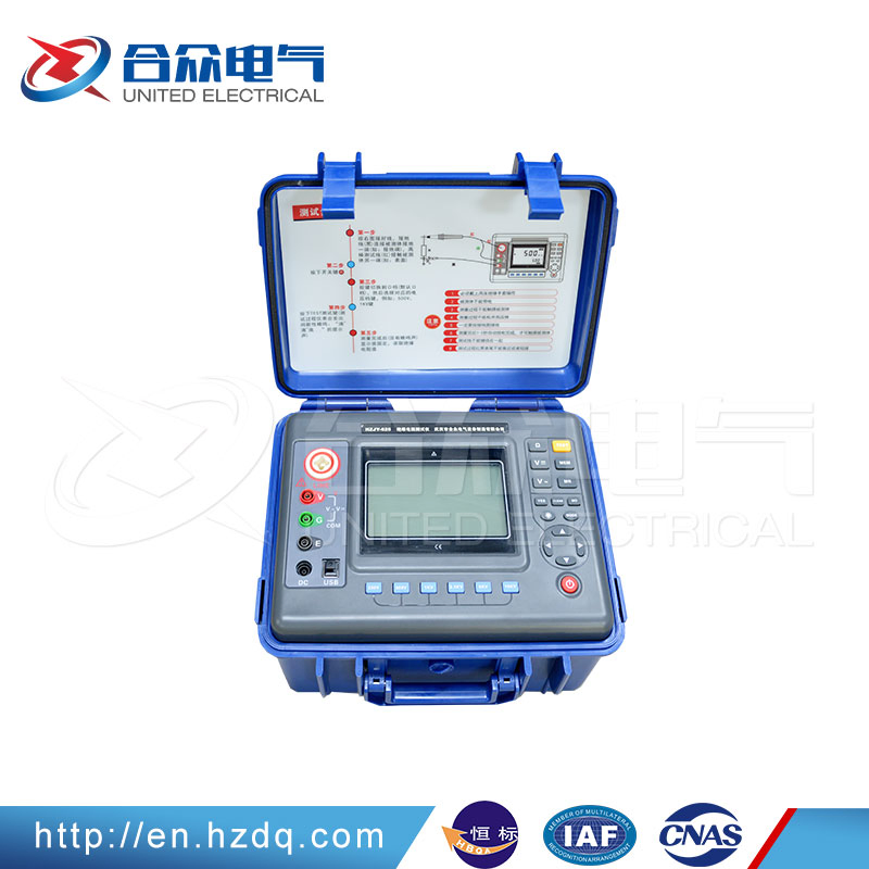 HZJY-624 Digital mega ohm meter is composed of medium and large scale integrated circuits. Large output power, high short circuit current, many output voltage level(there are four voltage levels).